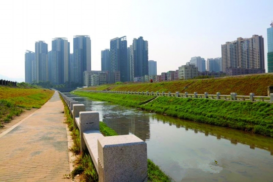 深圳坪山河位于深圳市東部海岸山系北麓,處于背風坡,地勢較高,故坪山河支流多源于此處(即干流南邊)。坪山河流域面積144.65km2,河道總長26.3km,從西南至東北縱貫坪山區(qū)全境,被坪山居民喻為“母親河”。